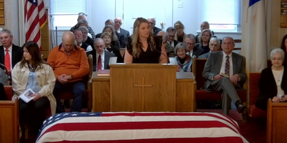 Standing behind her Dad’s flag-draped coffin, Kat Cahoon Alphin gave a powerful eulogy that talked about how his embrace of faith shaped his life and the lives of others.