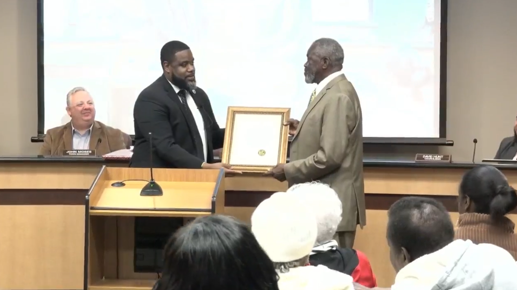 Before turning to the regular agenda, Mayor Weyling White paused the meeting to recognize outgoing Councilman Roy Sharpe Sr., who is completing his term after more than seven years of service.
