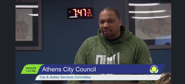 ATHENS, Ohio – Back where we used to live, Athens City Hall may be considering a proposed $2.50 monthly utility fee to help cover the cost of powering the city’s streetlights, a proposal that drew strong reactions from residents during public comment at Monday’s meeting. The photo shows Aaron Thomas, who gave a great speech about the high cost of living in Athens.