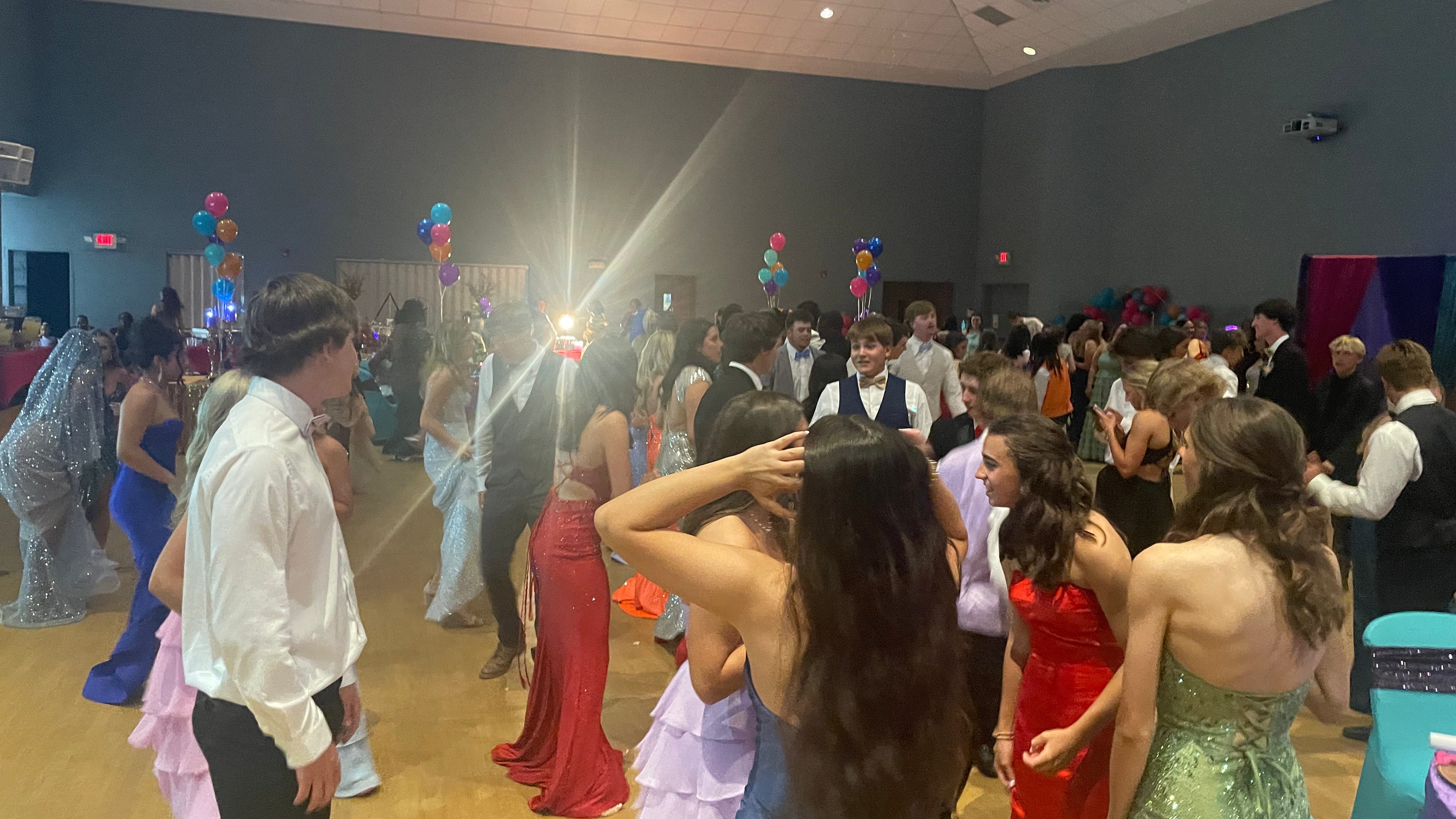 Principal Sonya Rinehart and many familiar faces — teachers, staff and even one very cool substitute teacher — welcomed Aces’ promgoers.